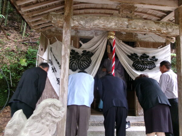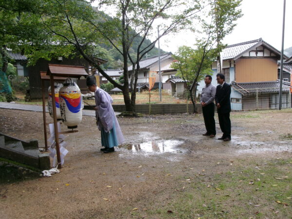 当日は、朝から予報通り雨が降っていましたが、始まる少し前には上がり予定通り進行する事が出来、今年度は、長年お世話になった神社の『提灯や鈴、鈴紐』などを新調し行いました。