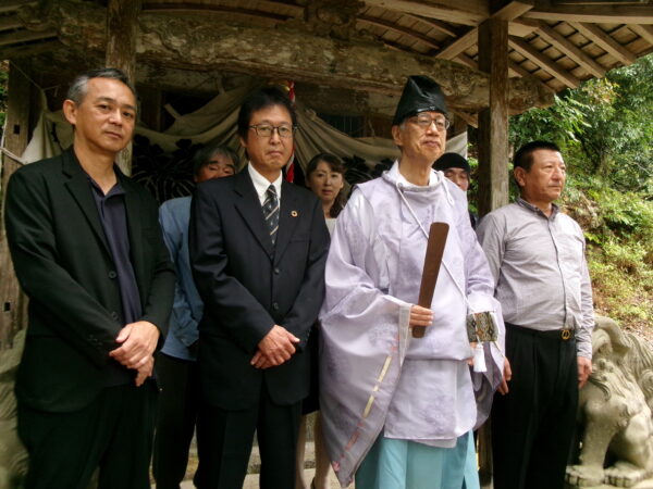 最初は、祭礼が始まる前に宮司様に以前の物をお祓い、新調した物にお清め頂き厳かに祭礼が始まりました。