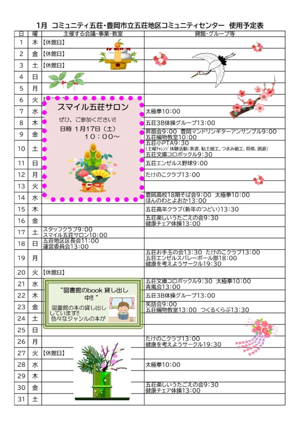 コミュニティ五荘だより 令和7年度1月号!!